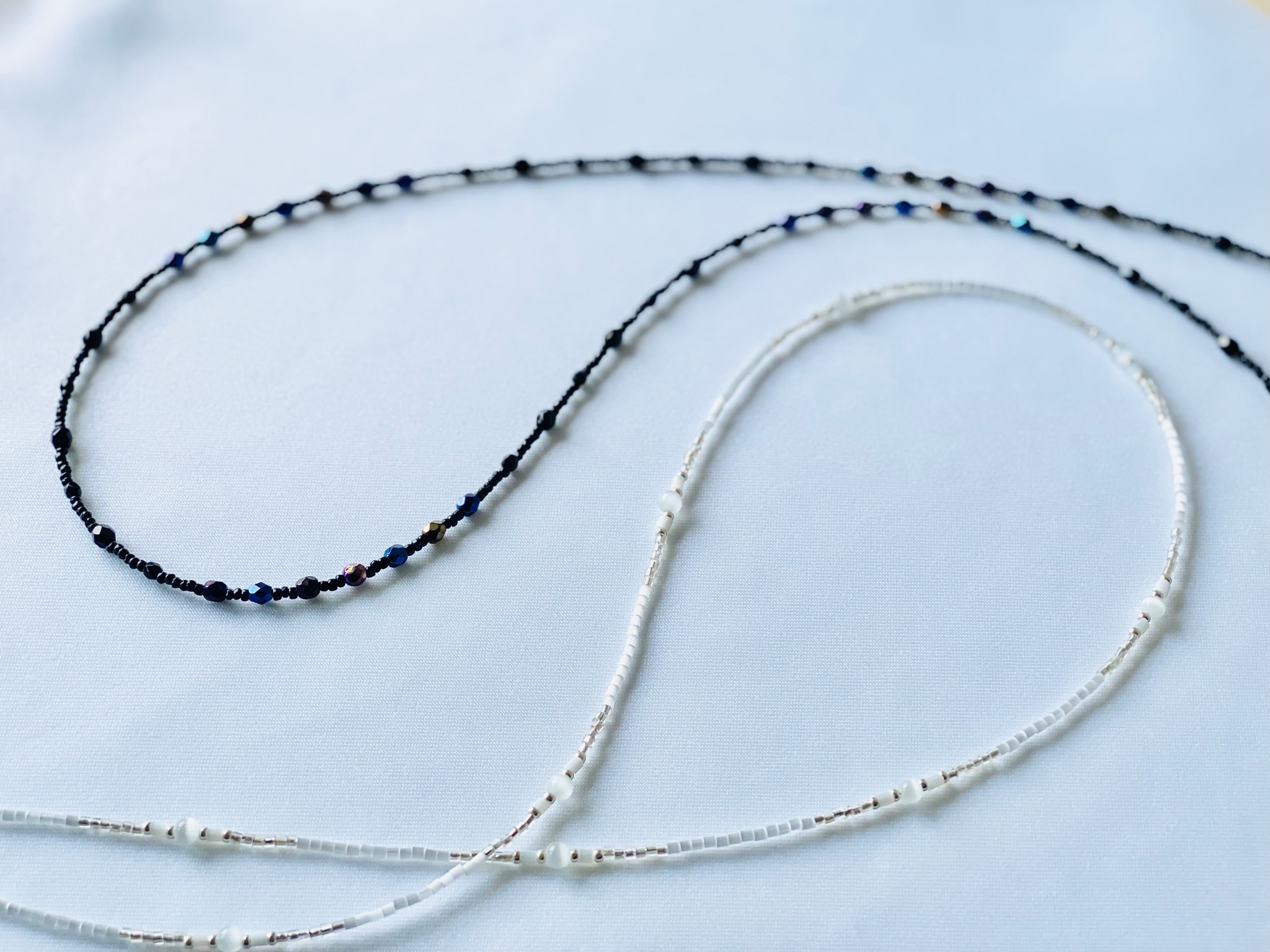 どちらもショートネックレスとビーズストラップの2種類展開です。