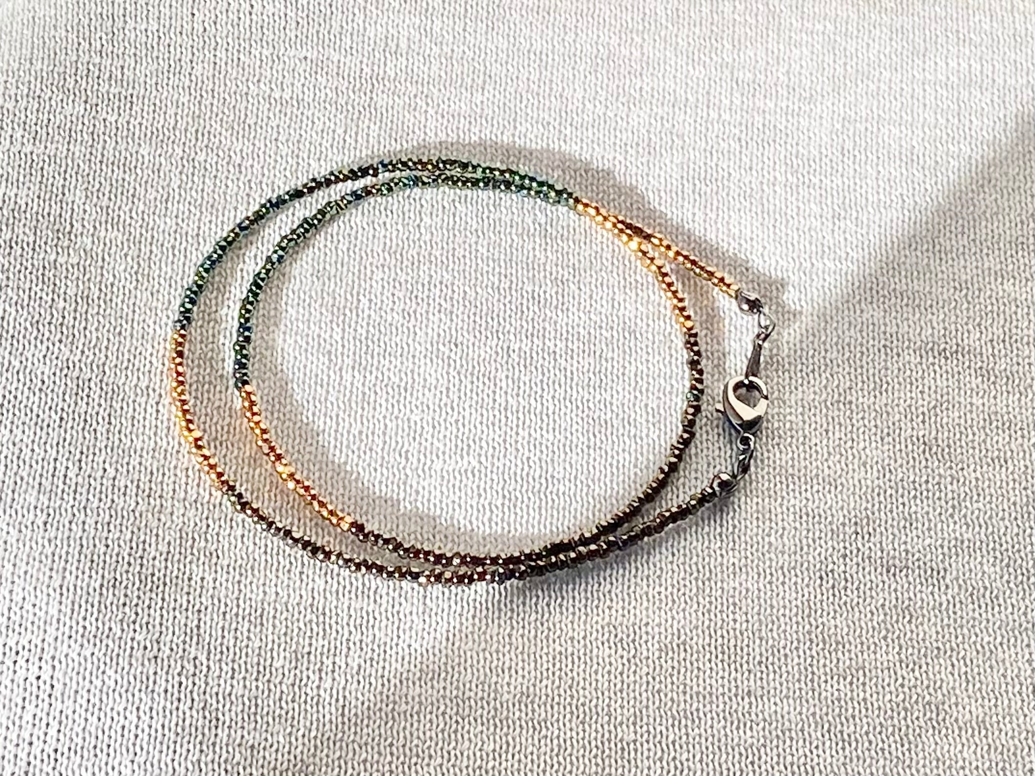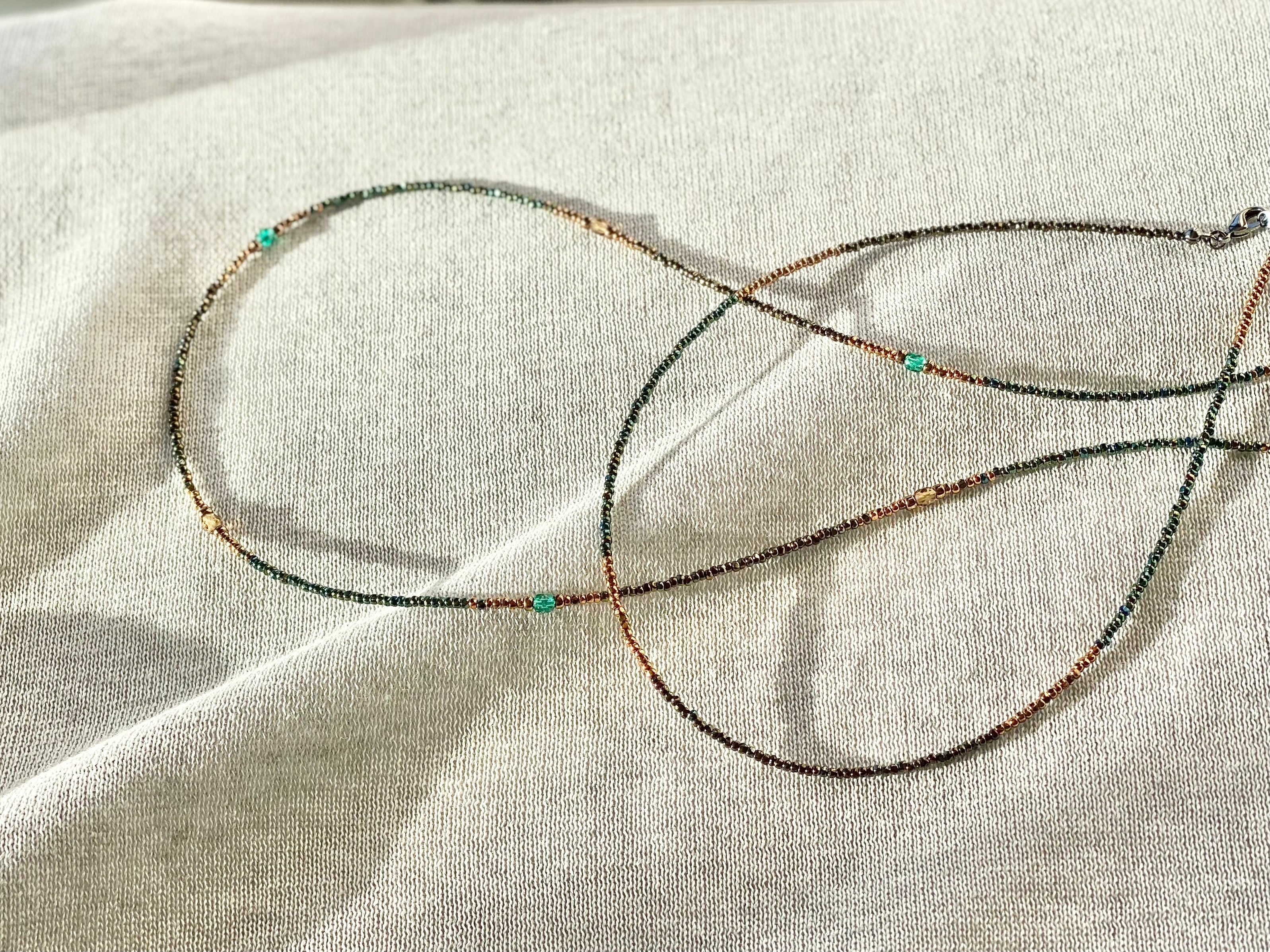 Deep forest メタリックカラービーズのショートネックレス green × brown
