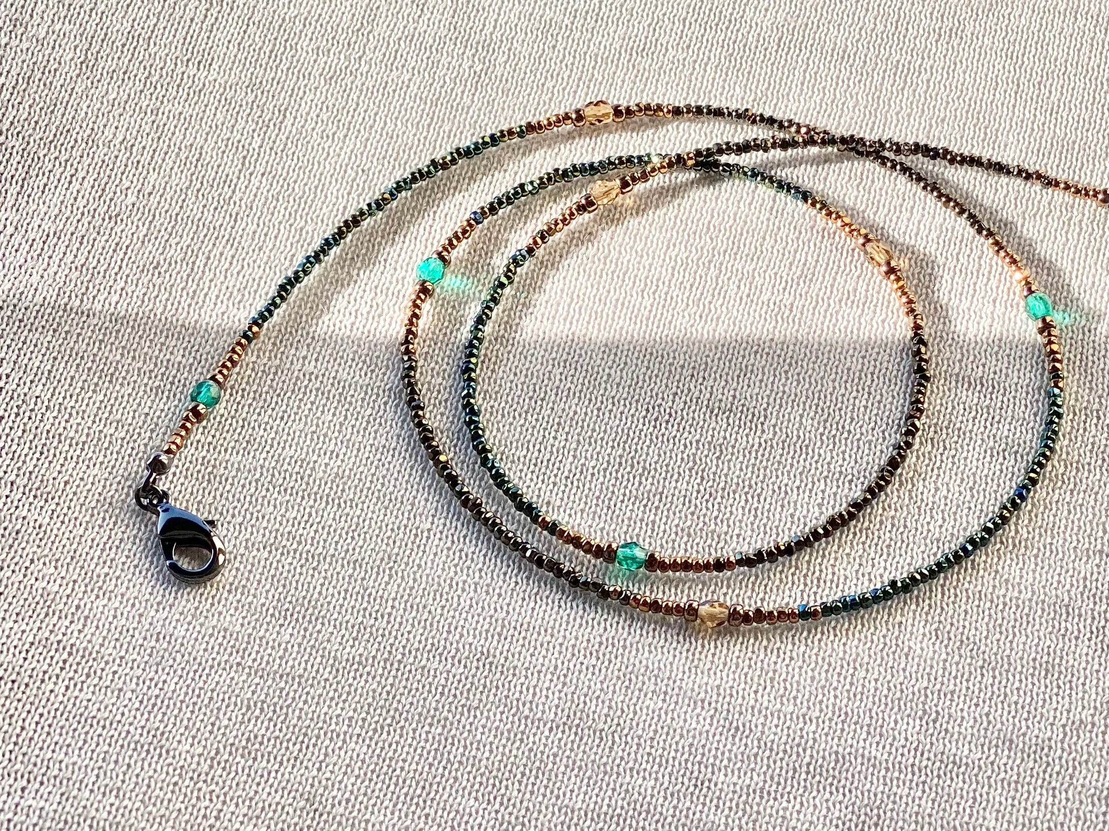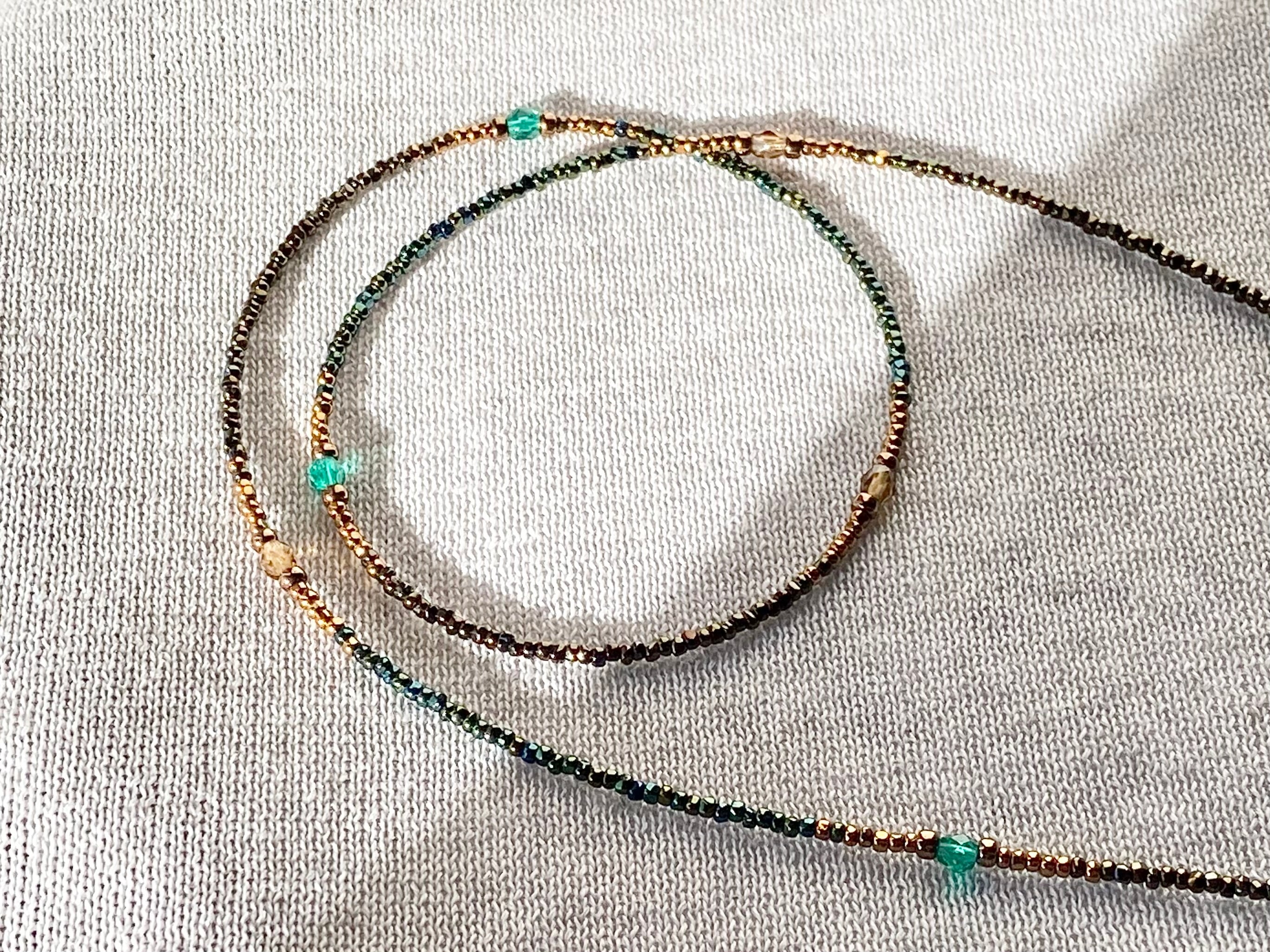 Deep forest メタリックカラーのマスクストラップ/ネックレス/グラスコード green × brown