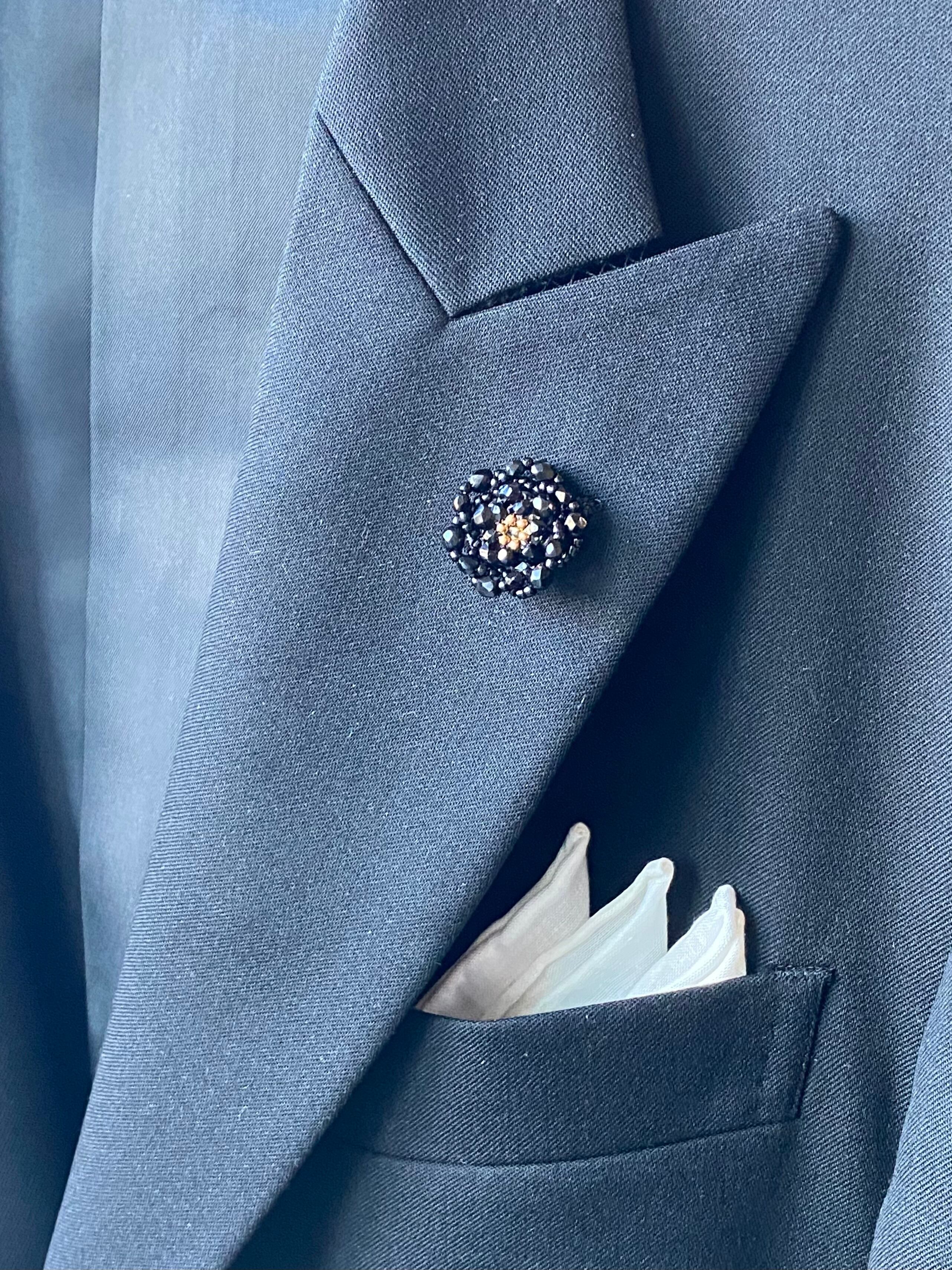ビーズの繊細な造形美をタックピン(ピンズ)に仕立てました。