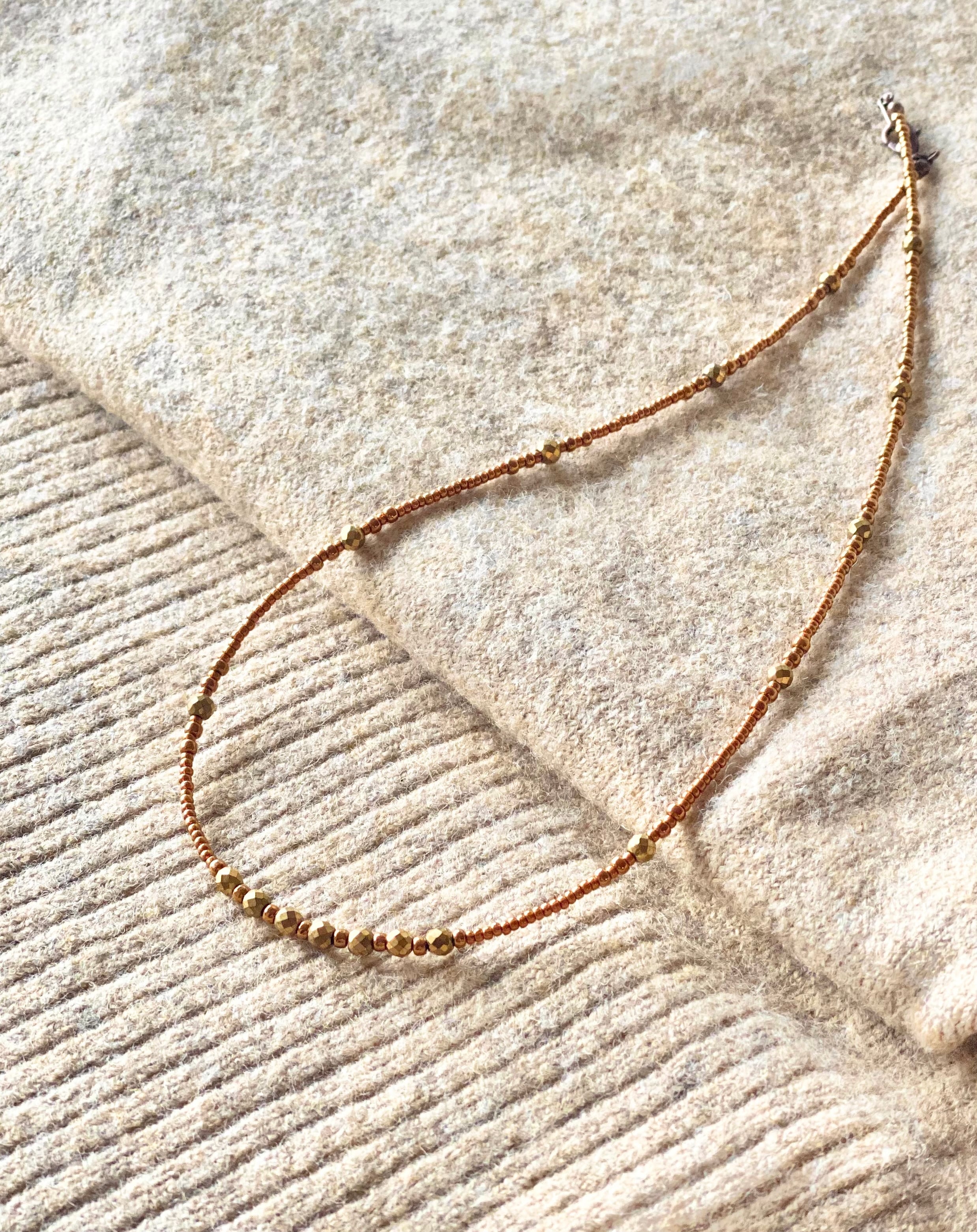シンプルモノトーンに繊細なデザインが魅力のビーズネックレスです。