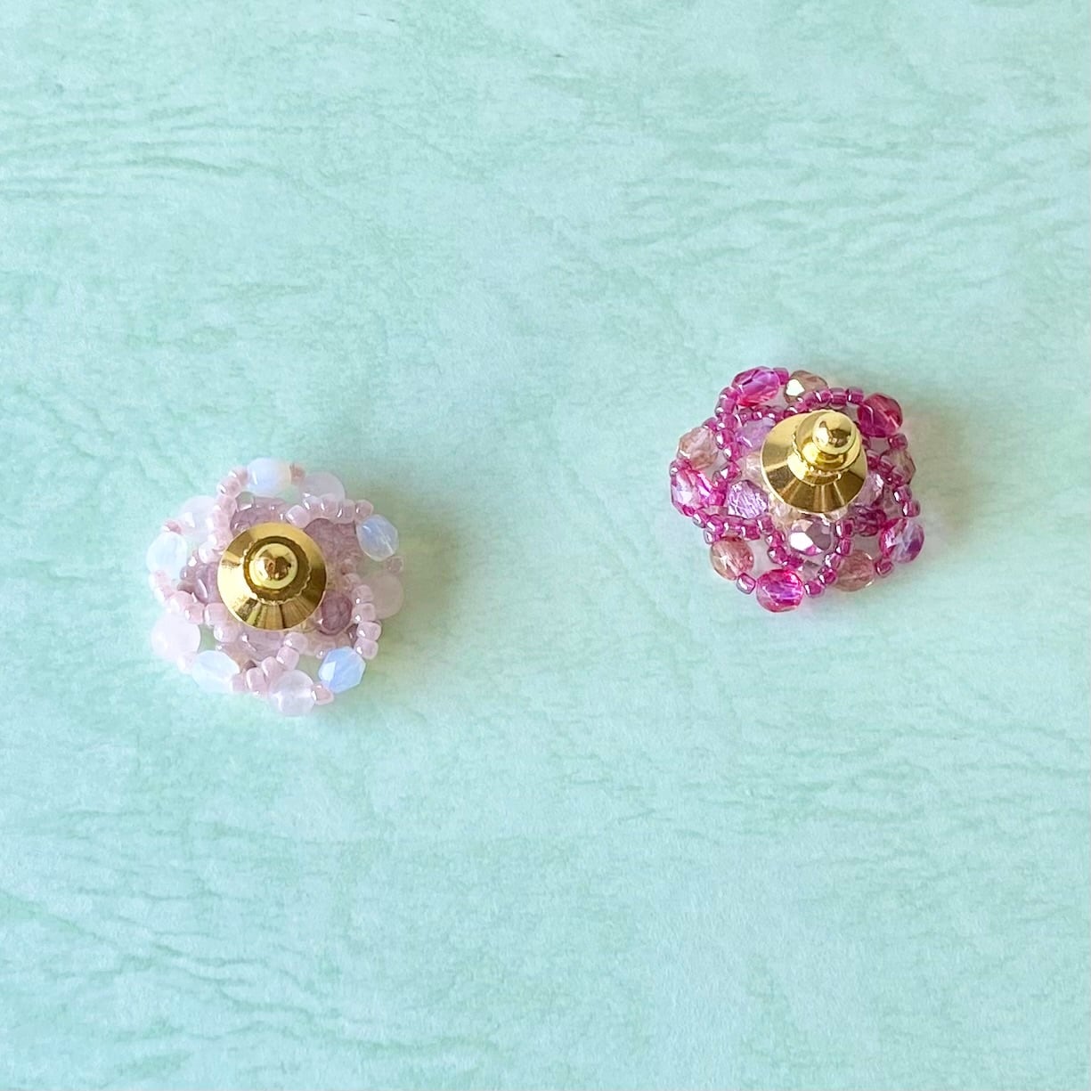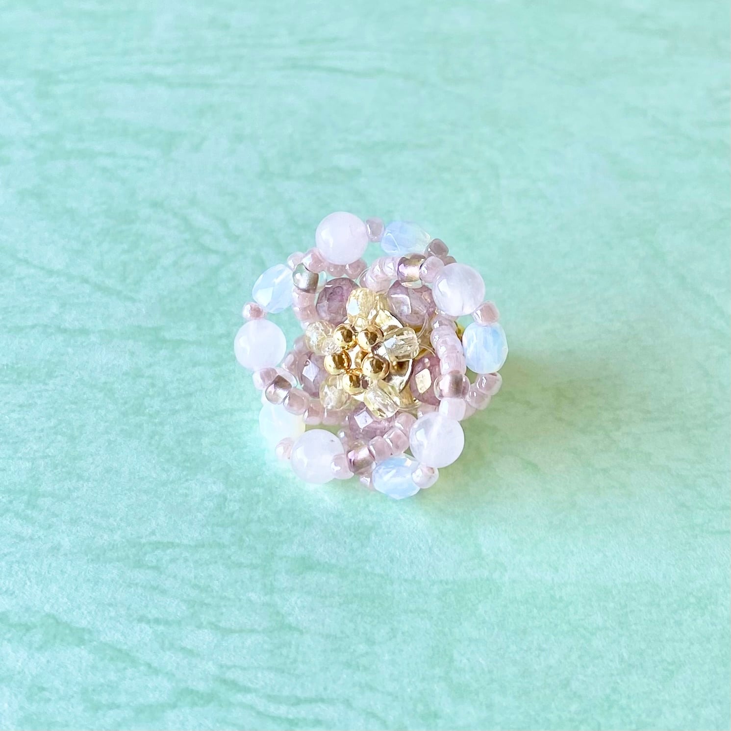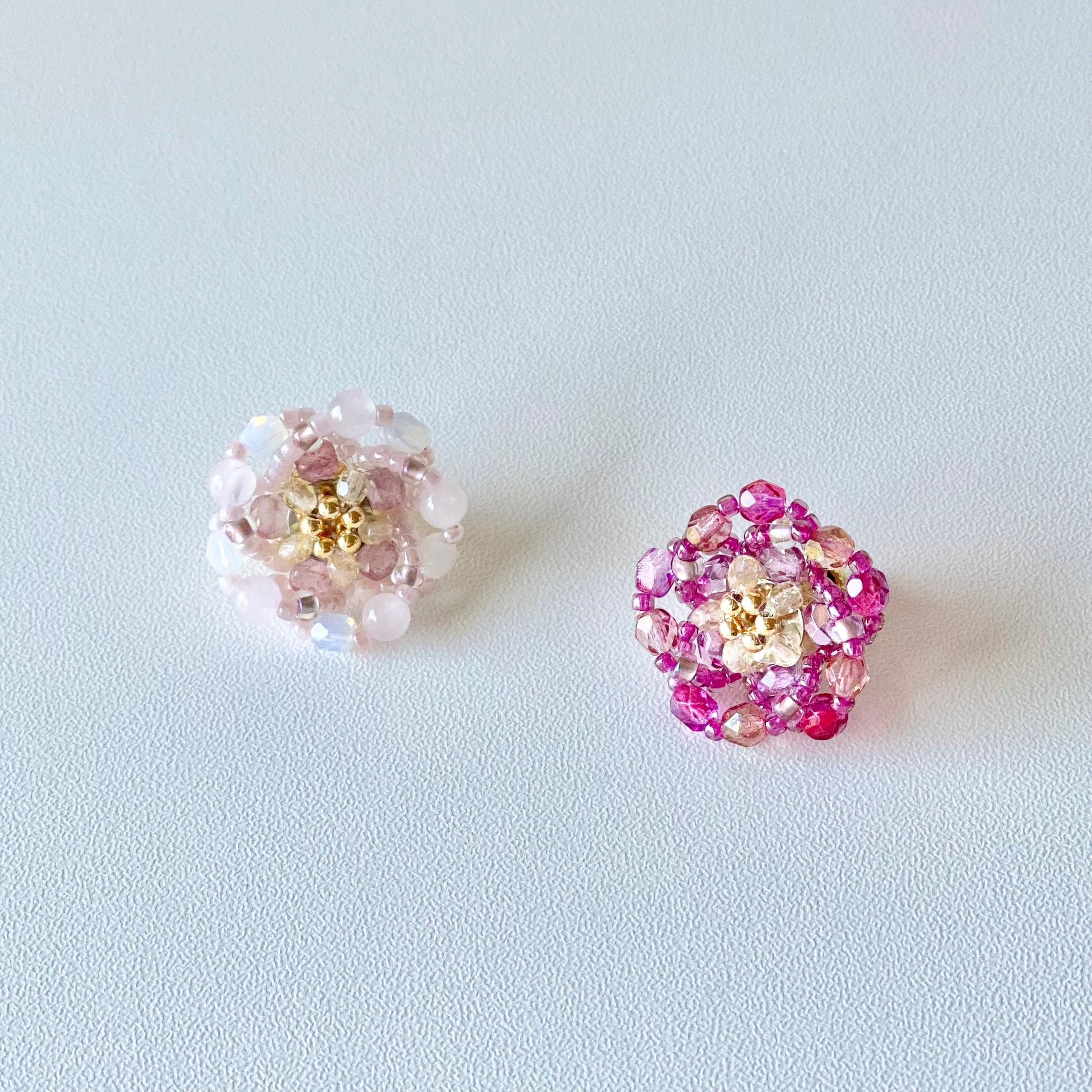 天然石ローズクォーツとホワイトオパールのチェコガラスビーズで、ソメイヨシノのように薄淡いピンクを表現しました。