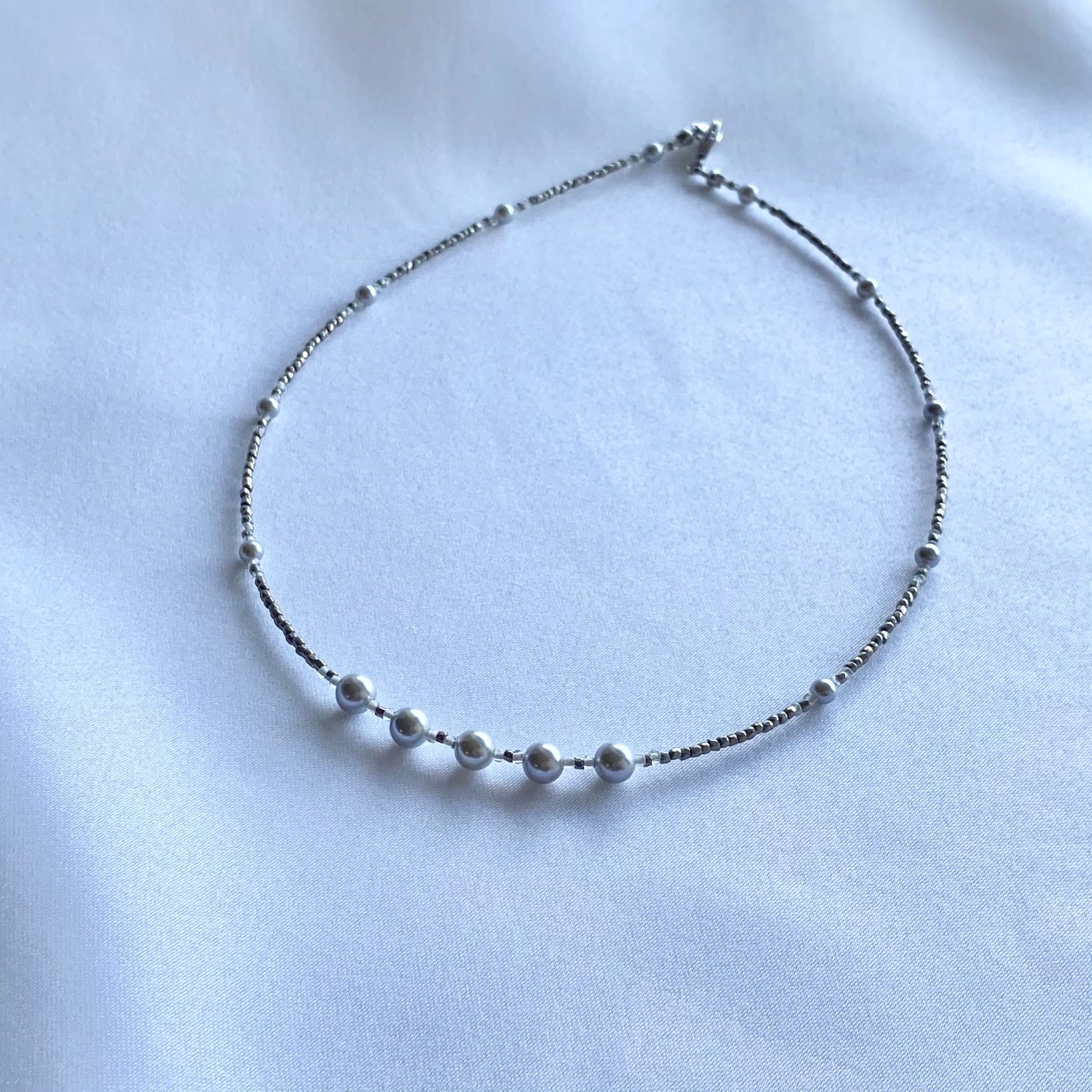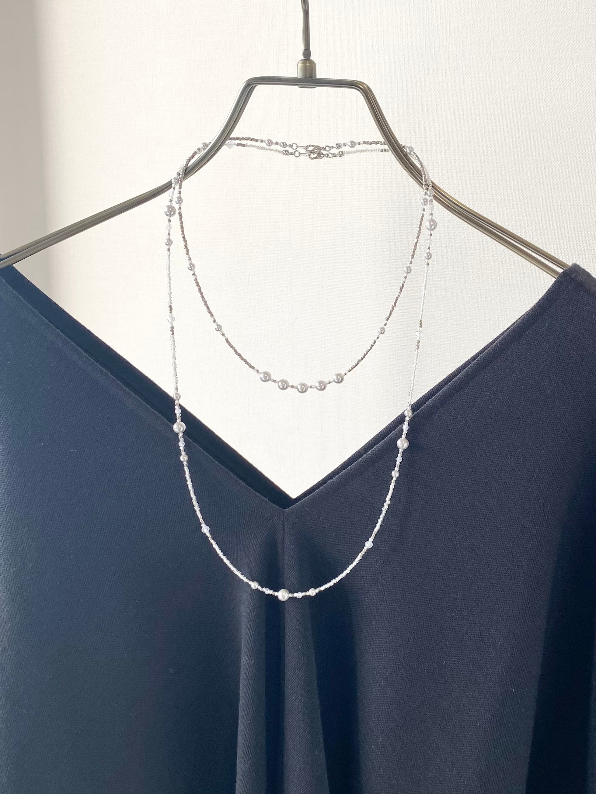 プレシャスビーズとシルバーパールのショートネックレス プリンセスサイズ