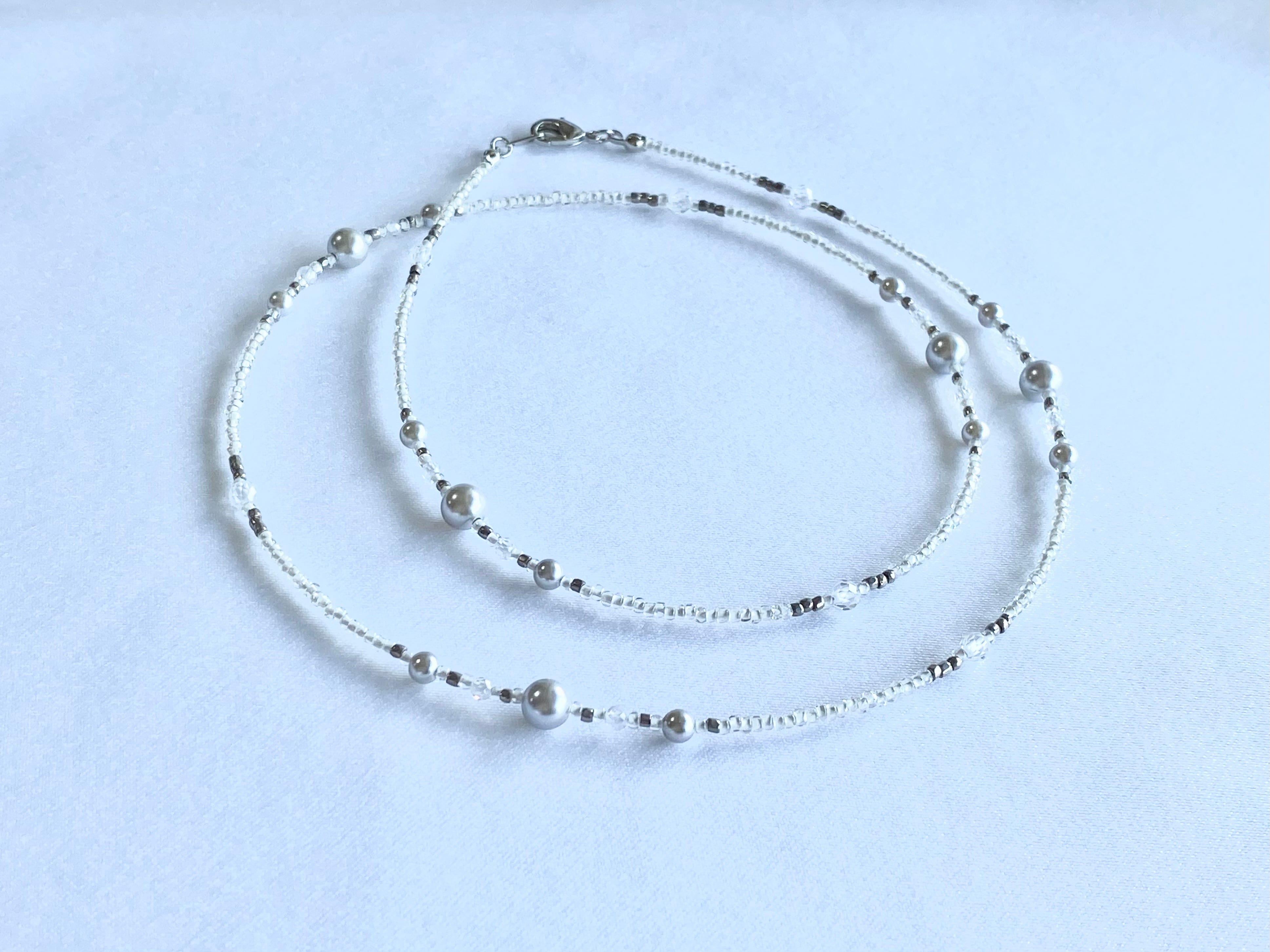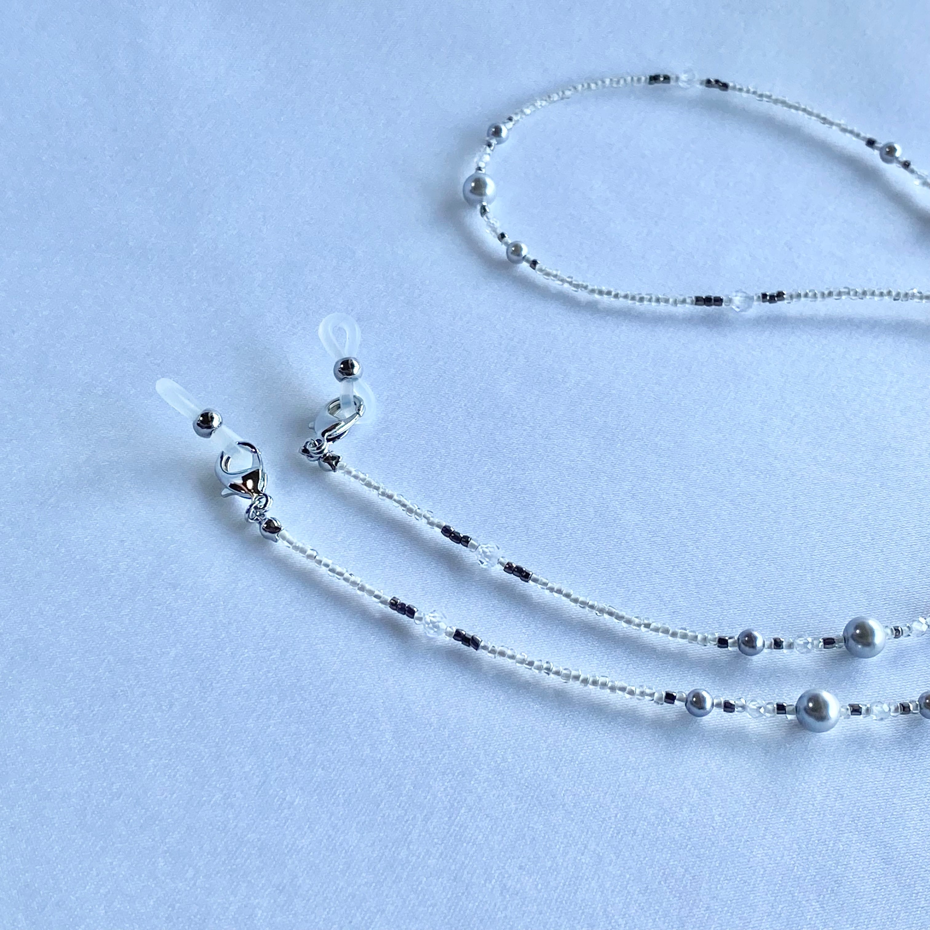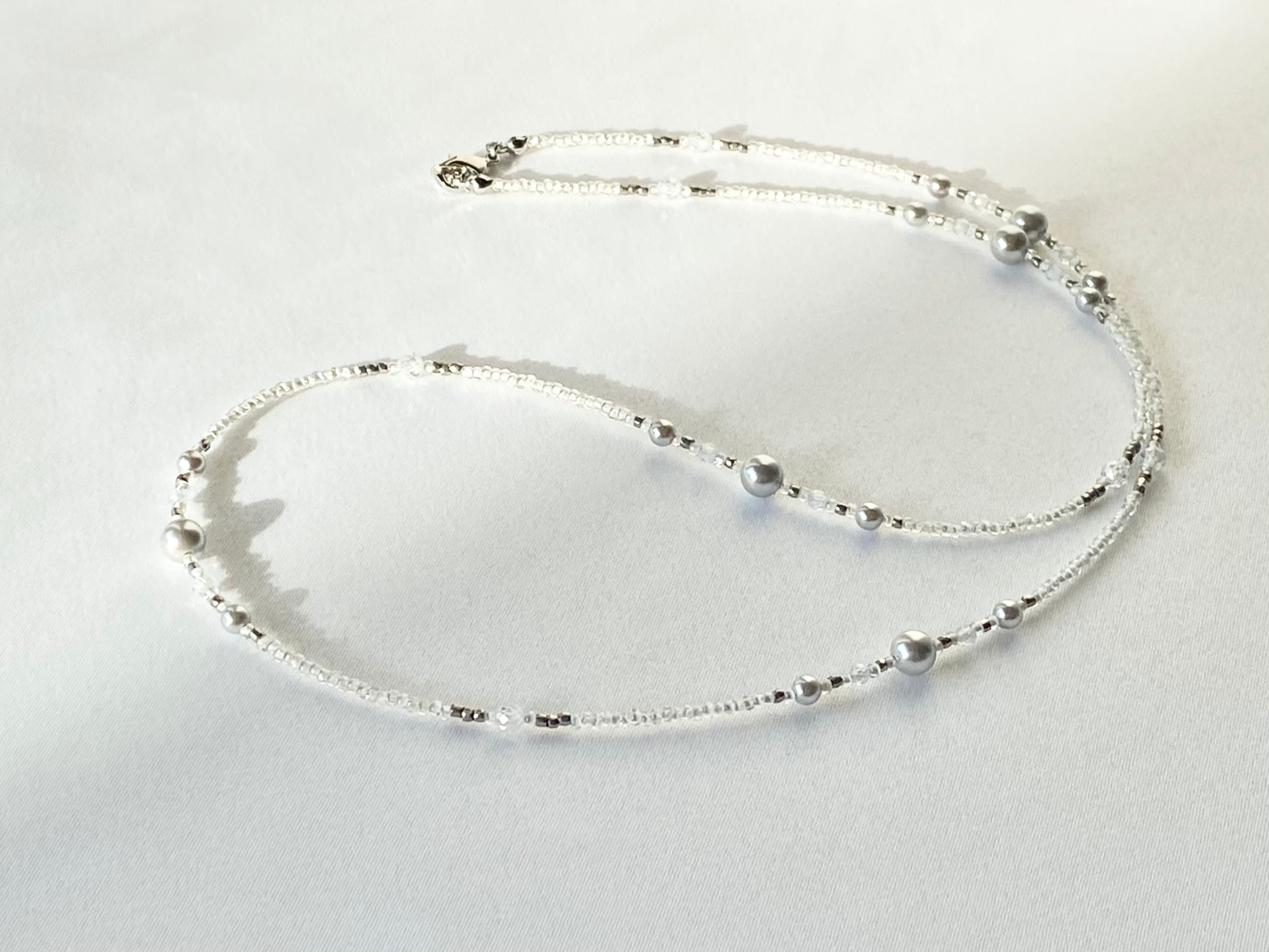ジルコニアとシルバーパールのマスクストラップ/ネックレス/グラスコード