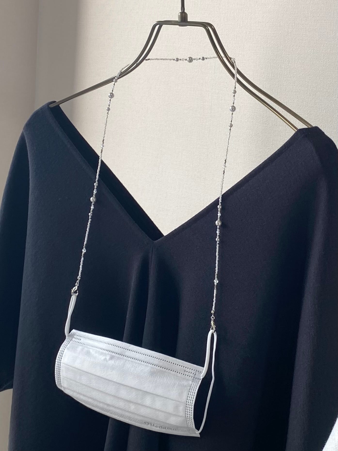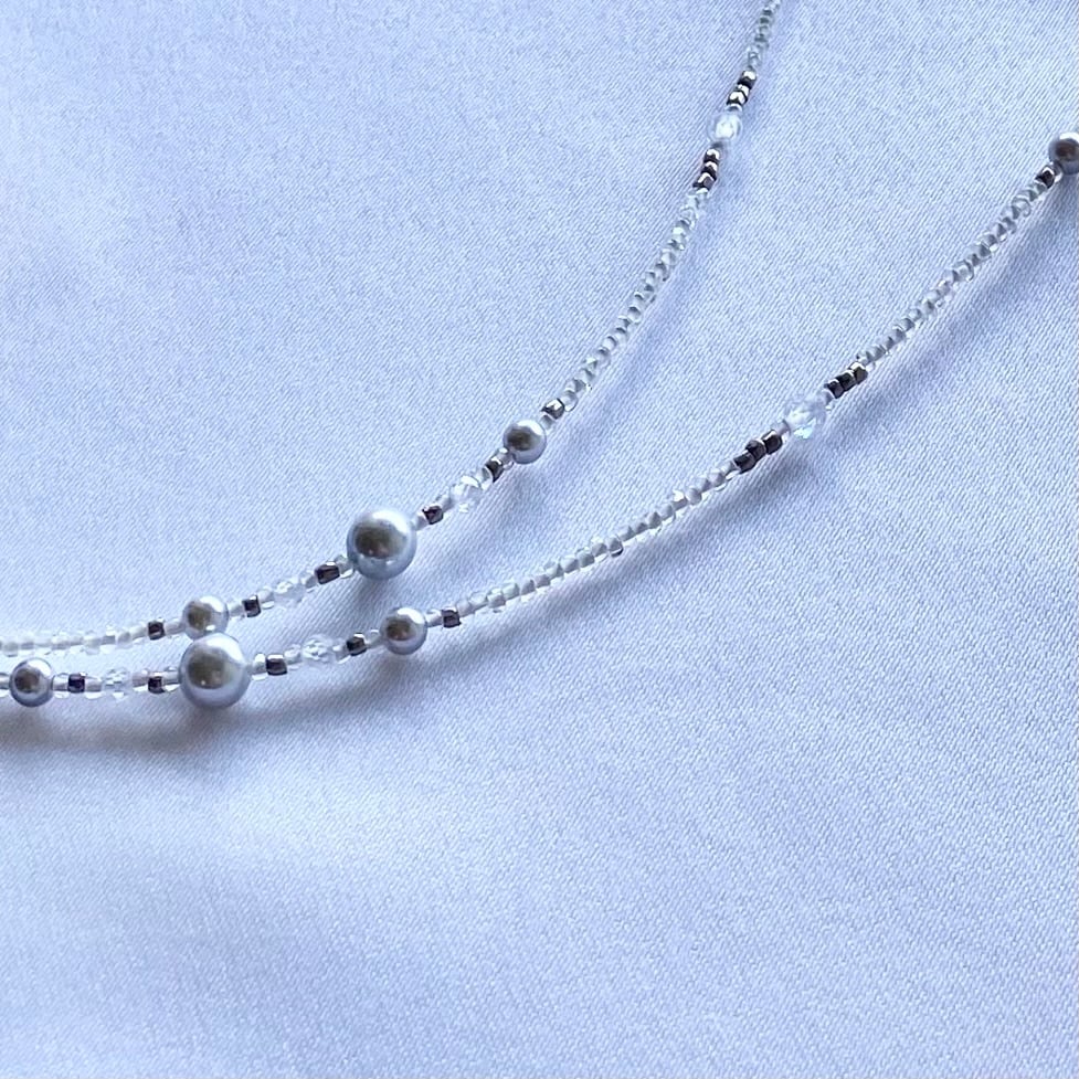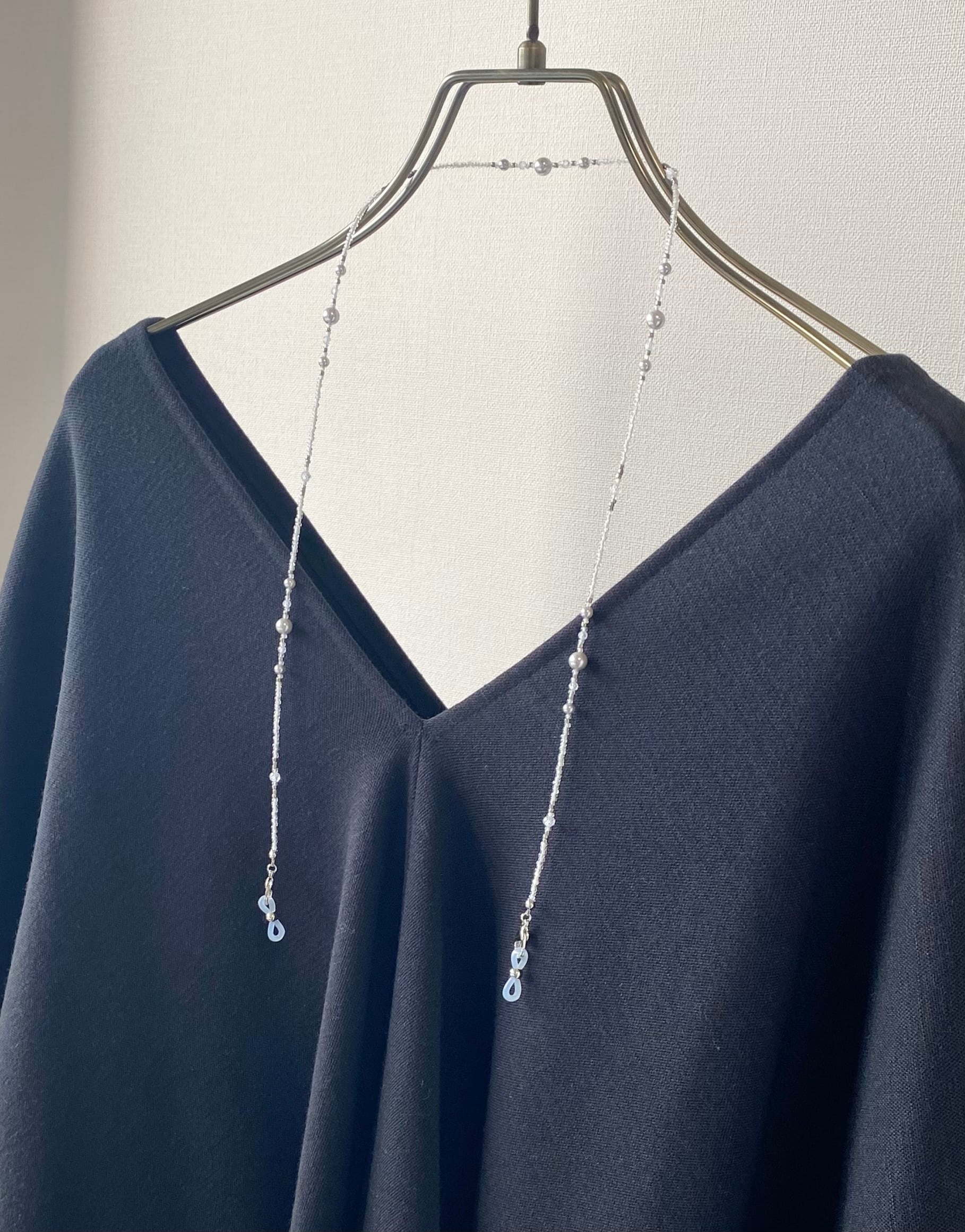 ジルコニアとシルバーパールのマスクストラップ/ネックレス/グラスコード
