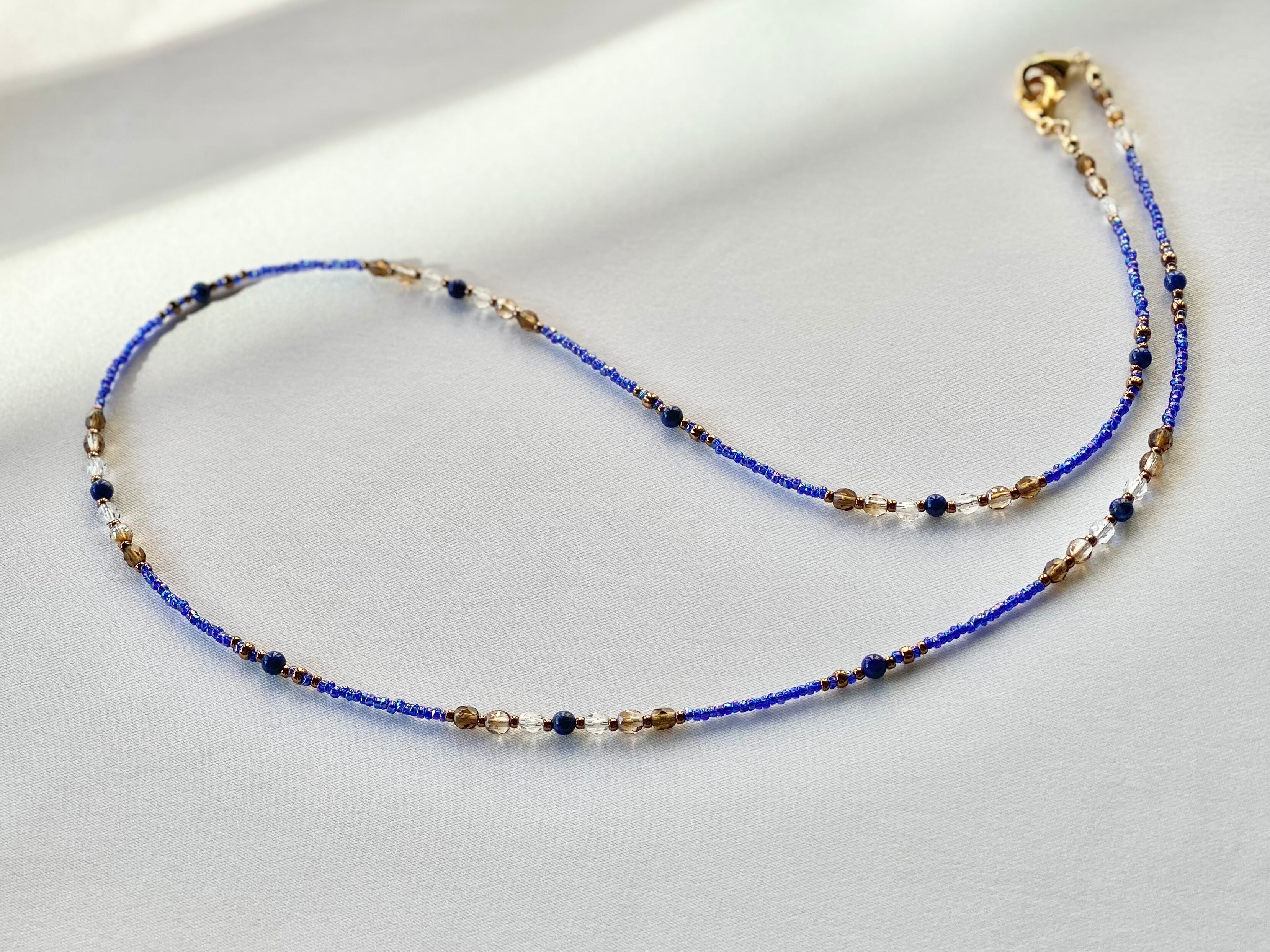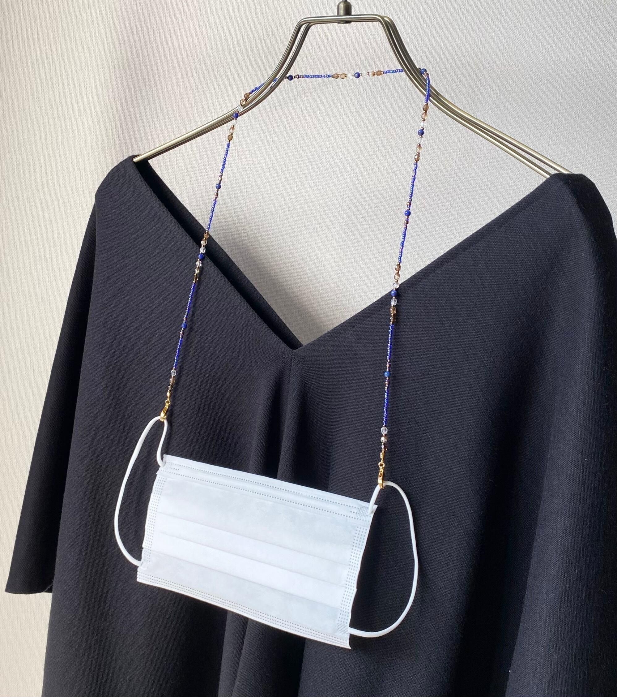 素材:天然石(ラピスラズリ)チェコガラスビーズ シードビーズ ナイロンコートワイヤー 留金具