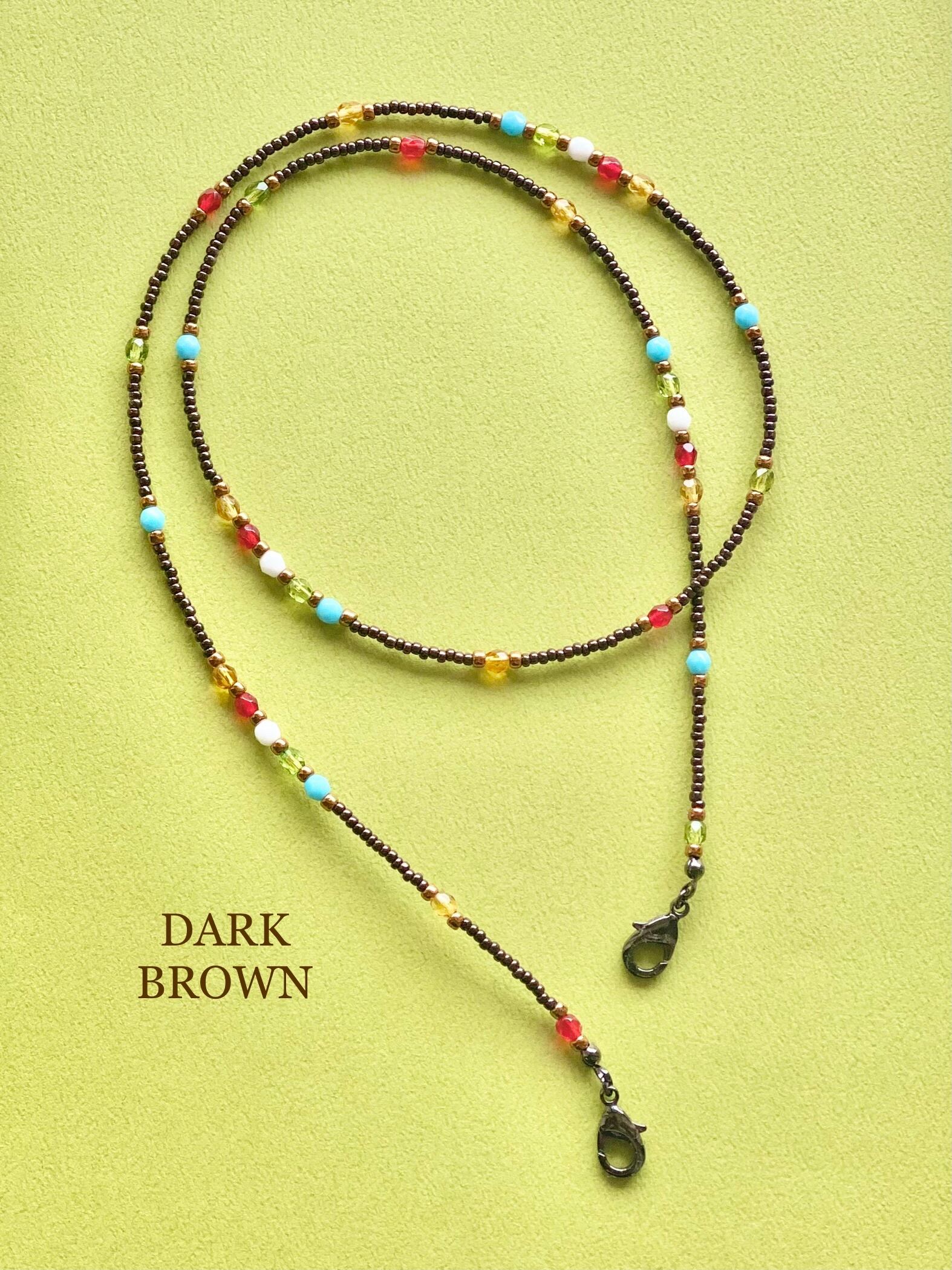 多彩な色をまとめるビーズコードは、カジュアルな【ブラック】と大人シックな【ダークブラウン】の2種類を作りました。