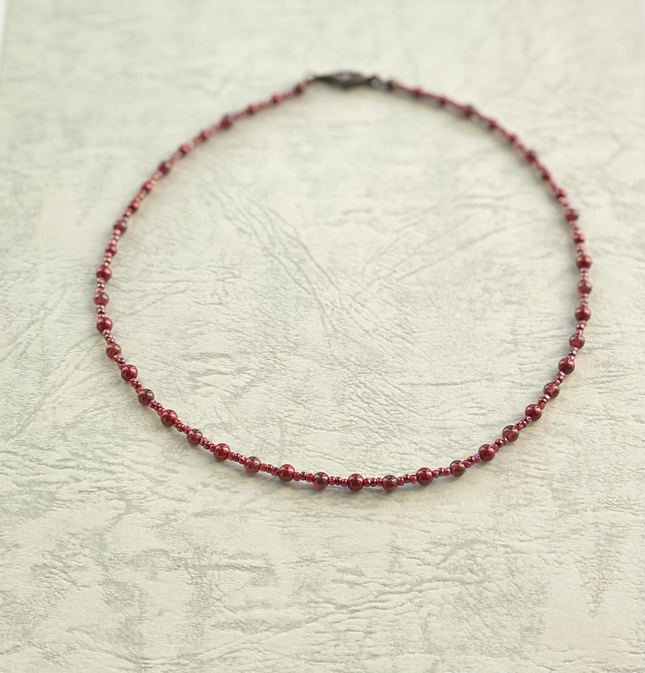 落ち着いた深い赤のモノトーン。シックなボルドーカラーのショートネックレスです。
