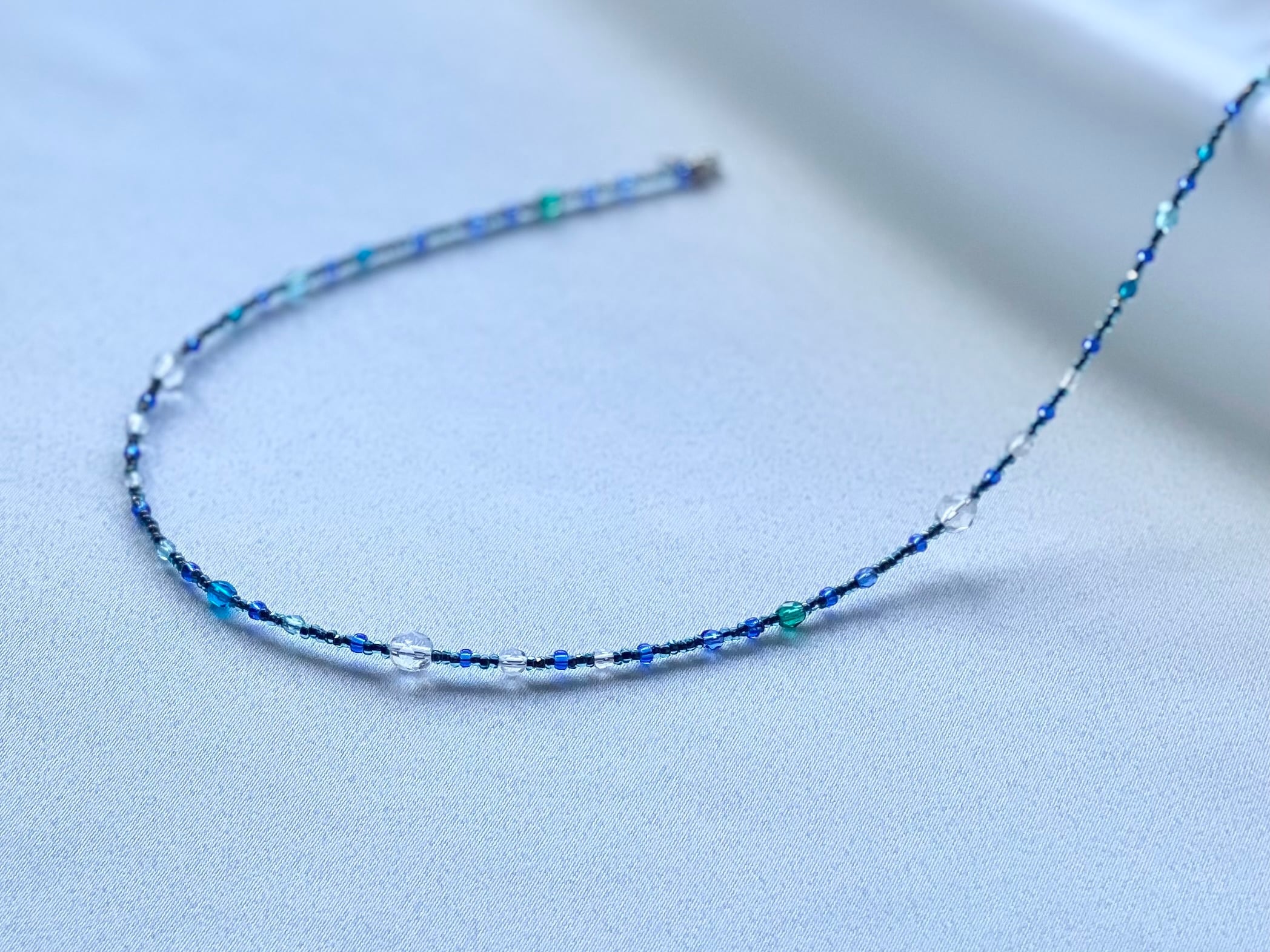 夏にぴったりのキラキラグラスビーズのネックレスです。